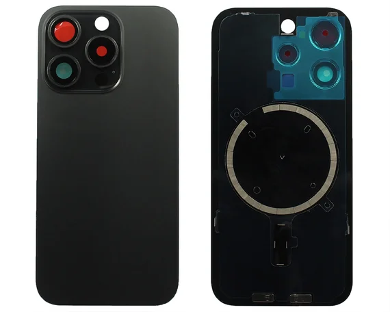 Задняя крышка (стекло) iPhone 15 Pro (со стеклом камеры в сборе+магнит) черный титан 1кл