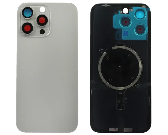 Задняя крышка (стекло) iPhone 15 Pro Max (со стеклом камеры в сборе+магнит) натурал титан 1кл