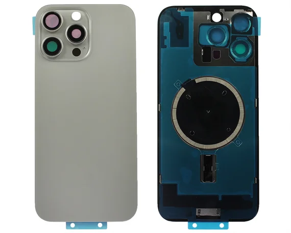 Задняя крышка (стекло) iPhone 16 Pro Max (со стеклом камеры в сборе+магнит) натурал титан 1кл